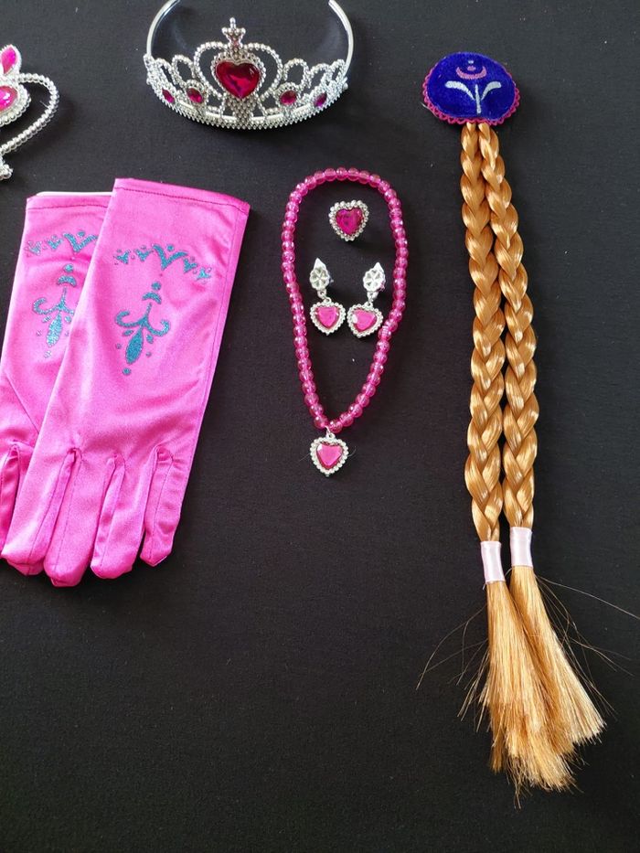 Lot accessoires rose fushia composé de bijoux, gants, baguette, couronne et une tresse. Convient aux petites filles de 3-6ans. Totalement neuf, vendu dans son emballage d’origine. Expédition rapide après votre commande