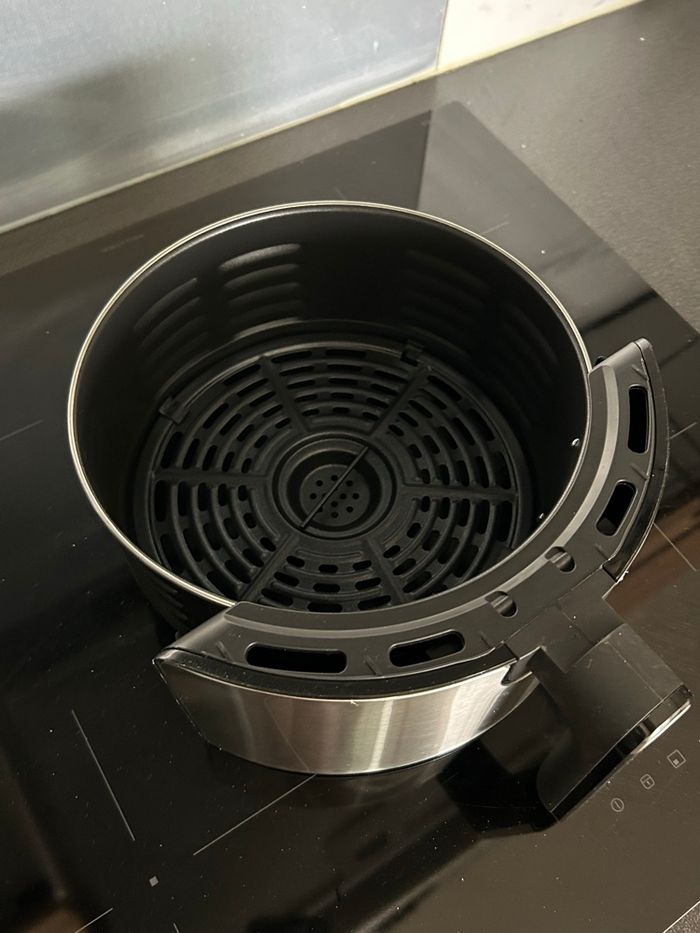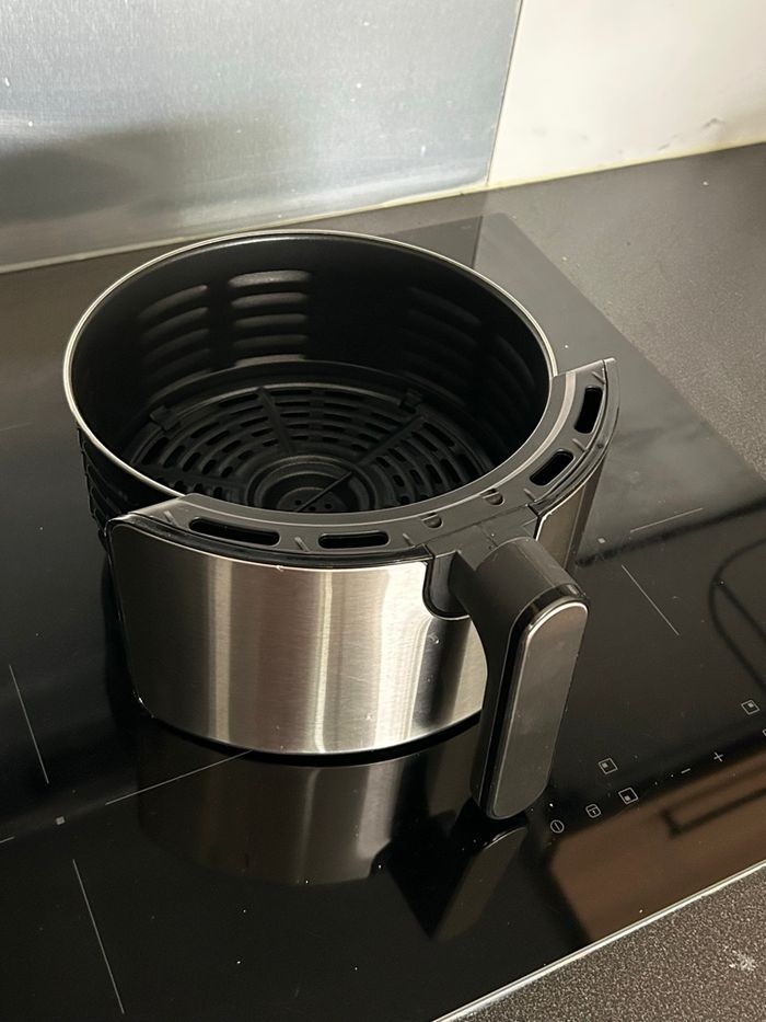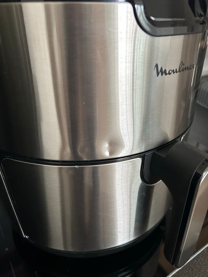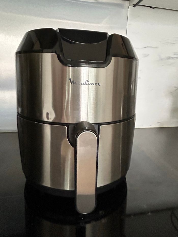 Air Fryer lMoulinex Easy Fry Deluxe (modèle EZ401D10) neuf jamais utilisé en acier inoxydable brossé. Il a un petit coup sur le devant de l’appareil, ce qui empêche pas du tout son bon fonctionnement. Je l’ai reçu comme ça quand je l’ai commandé chez Moulinex Points forts de l'appareil : • Capacité XL : Cuve de 4,2L, idéal pour une famille (jusqu'à 6 personnes) ou pour recevoir. • Écran tactile : Interface digitale très intuitive avec 8 modes pré-programmés (frites, grillades, poissons, gâteaux, pizzas, etc.). • Polyvalent : Il frit, rôtit, grille et cuit toutes vos préparations. • Température : Réglable avec précision de 80°C à 200°C. • Entretien facile : Le panier et la grille sont amovibles et passent au lave-vaisselles