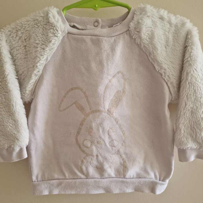 💐Négociation acceptée sur lot💐 Pull blanc avec un lapin en relief Manches toute douce Marque grain de blé Parfait état Taille 1 an