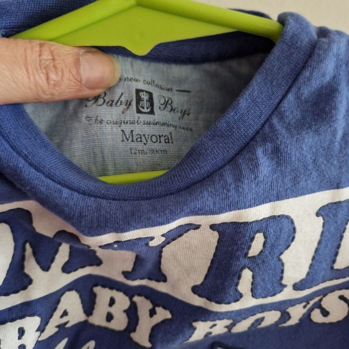 💐Négociation acceptée sur lot💐 Tee shirt humoristique bleu Baby biy Taille 12 mois Très bon etat MAYORAL