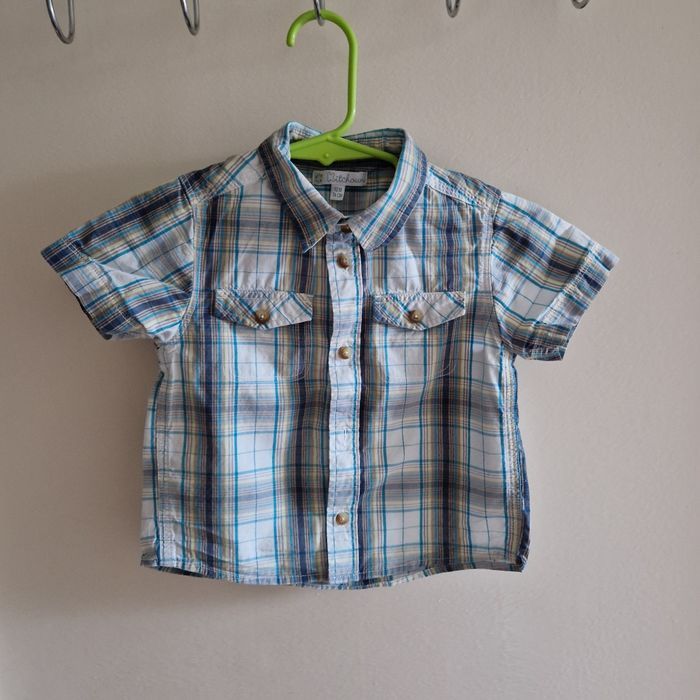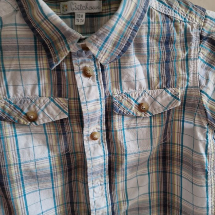 💐Négociation acceptée sur lot💐 Descriptif : chemisette multicolore Taille : 1 an Couleur : multicolore bleu/vert/jaune Marque : kitchoun Etat : parfait