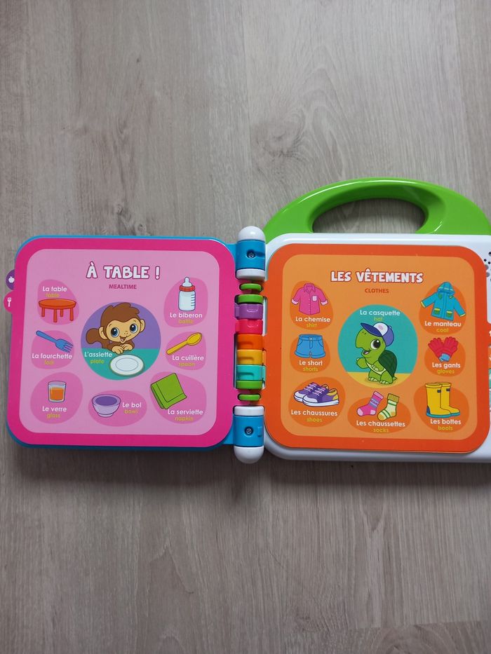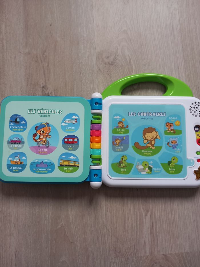 Jeu livre "Mes 100 premiers mots" de Vtech. Les pages sont en très bon état mais l'électronique a grillé. Il n'y a donc plus de son....