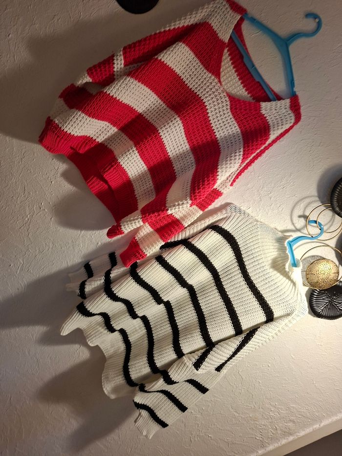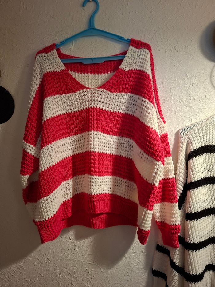 pas besoin de faire des offres, je ne répond pas lot de 2 pulls taille unique -pull rose et blanc Longueur 63 cm aisselle 70 cm épaule 77 cm Jamais mis -pull marin oversize Longueur 68 cm aisselle 81 cm jamais mis