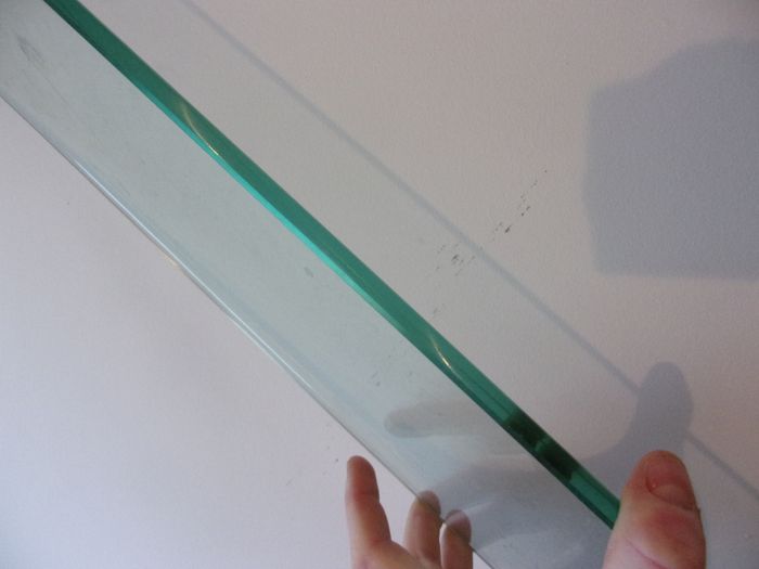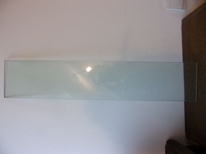 Etagère en verre plutot épais Parfait état Manque une fixation (la seule fixation peut-être mise avec) Idéale salle de bain