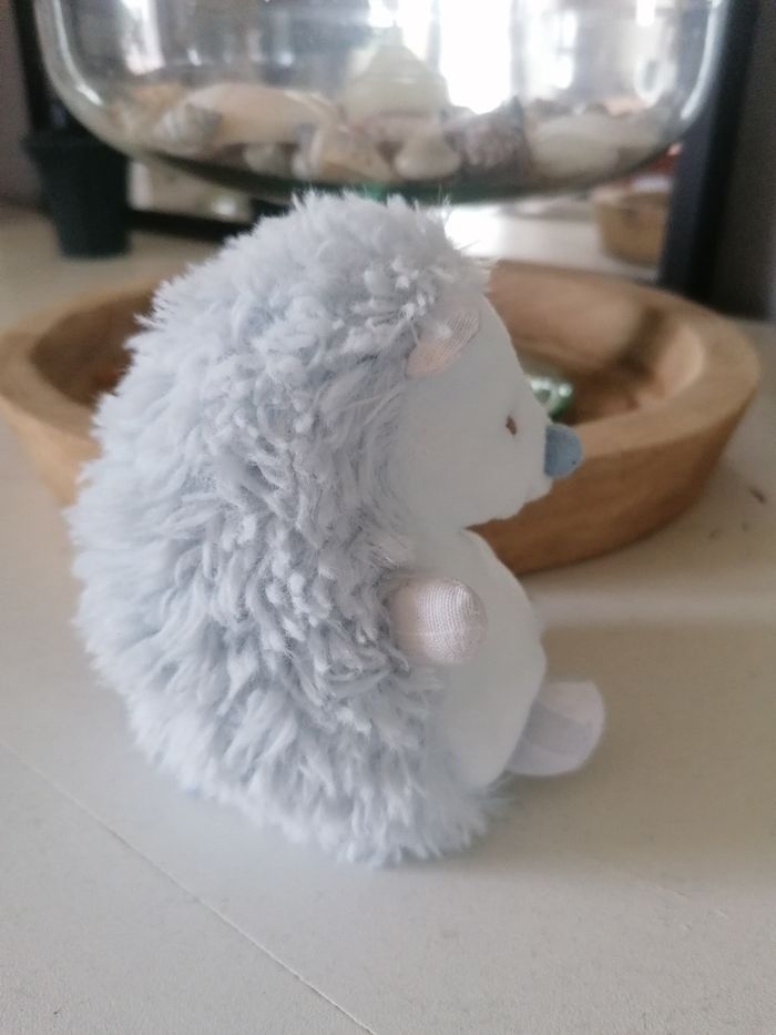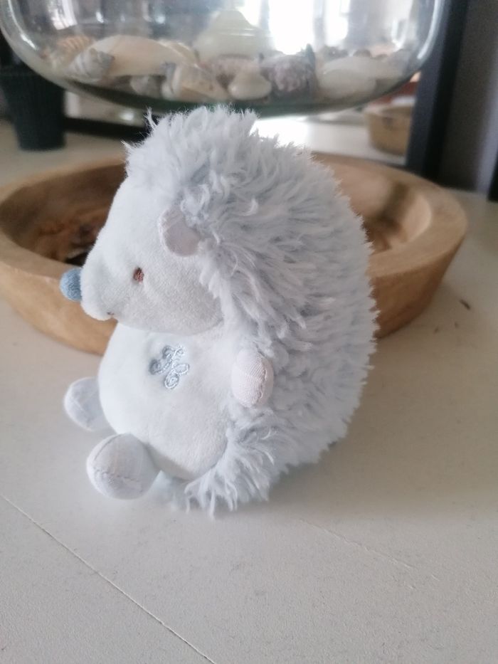 Doudou ou peluche Hérisson Bleu clair Très bon état Tartine et chocolat Hauteur environ 10cm
