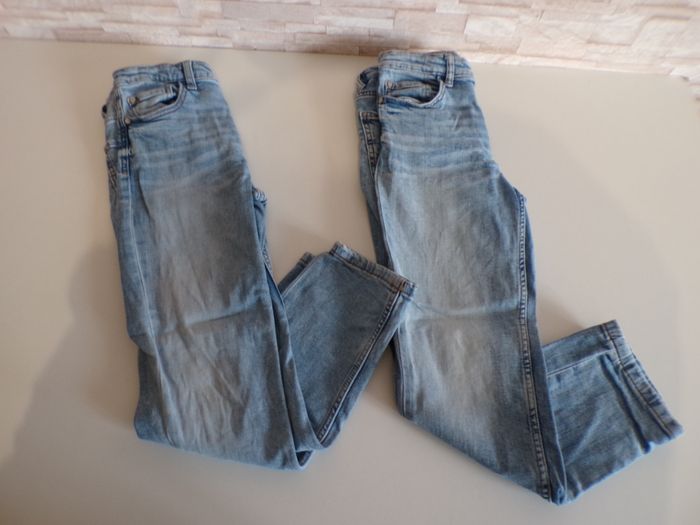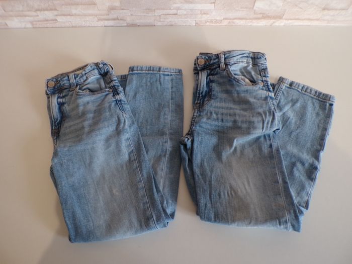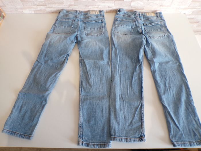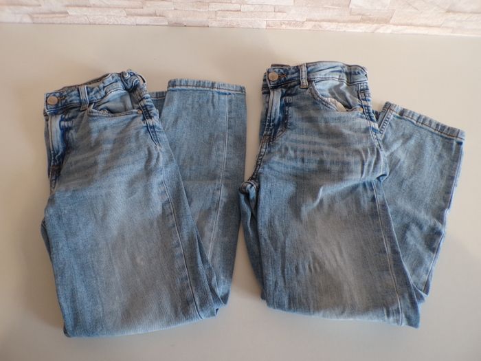 Jeans 9/10 ans en super bon état. L'un des deux jeans a une tâche marron qui se voit légèrement, peux surement partir avec du détachant. L'autre jean a des traces blanches sur le devant, ce ne sont pas des tâches, c'est intégré dans le tissu (acheté neuf comme cela, voir photos). Les jeans sont réglables sur les côtés. Mon dressing est trié par catégories, tailles et saisons pour les vêtements. Cliquez sur mes liens # qui sont dans l'annonce. #sonia222404 #garçonautomnehiver9ansonia222404 #garçonprintempsété9ansonia222404 #garçonautomnehiver10ansonia222404 #garçonprintempsété10ansonia222404