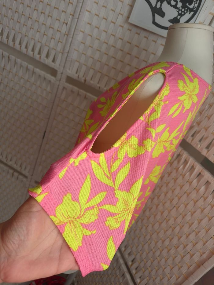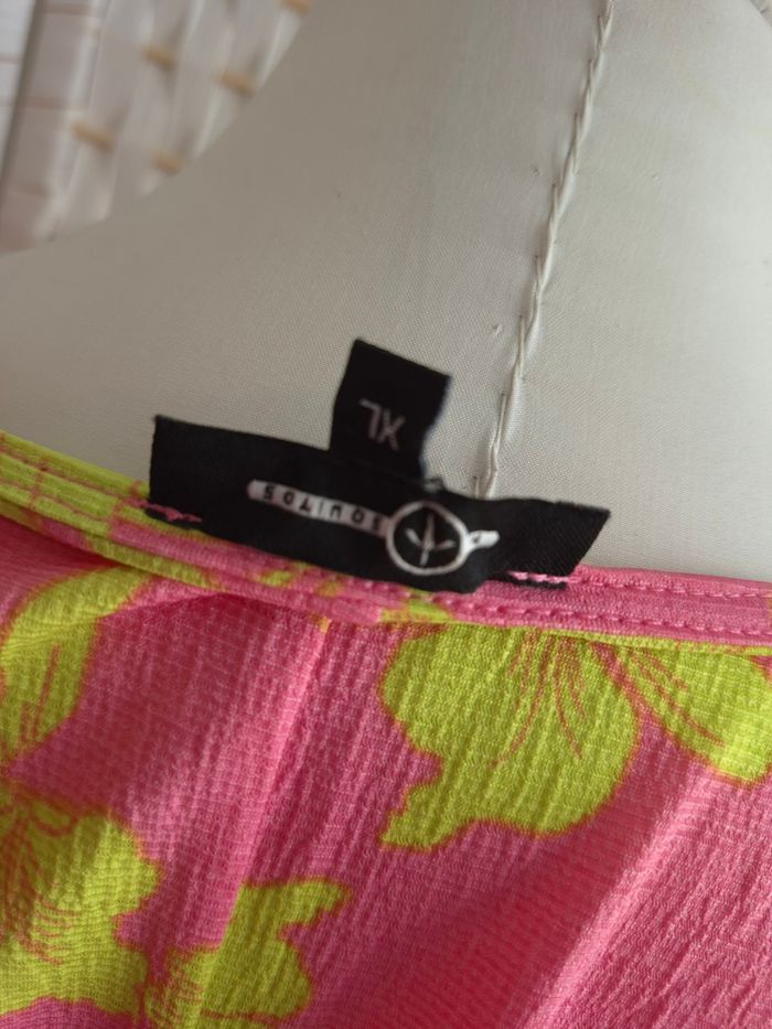 💕Jolie blouse rose poudré aux motifs floraux jaune acidulé avec collier femme TXl / 42 mosquitos 💕