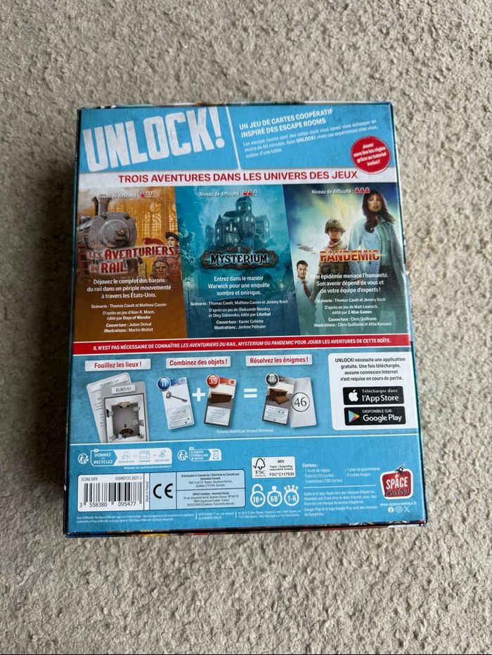 Unlock! Game Adventures — escape game 🎁 Jeu neuf, jamais ouvert, encore sous blister • Nécessite l’application gratuite Unlock! • 1 à 6 joueurs / 60 min • À partir de 10 ans