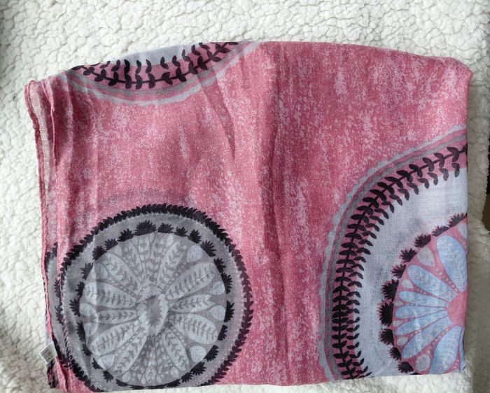 Lot 2 écharpes 100% viscose Grise 68×1.80 Rose 74×1.80 Neuves