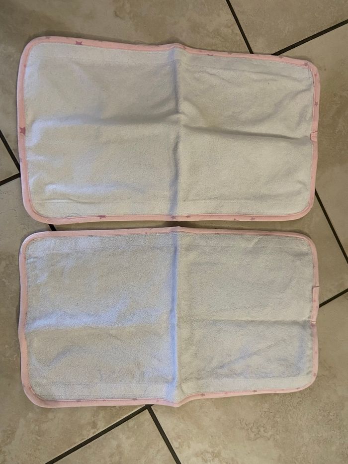 Housse matelas à langer avec ses deux alèses assorties qui se scratch dessus Lavables en machine État satisfaisant mais beaucoup utilisées