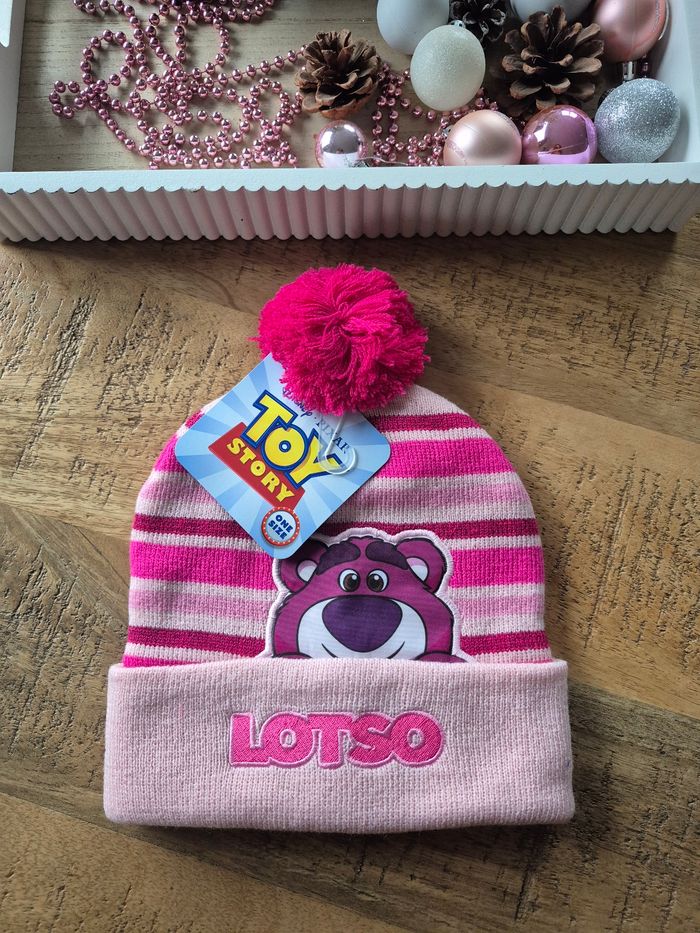 🧤 Bonnet Fille avec pompon Fuschia Lotso Toy Story 📏 Taille Unique (5 ans au 8 ans) 💠 100% Acrylique 🏷 Etat neuf avec Étiquette, sous blister 🚚 Envoi Rapide et Soigné
