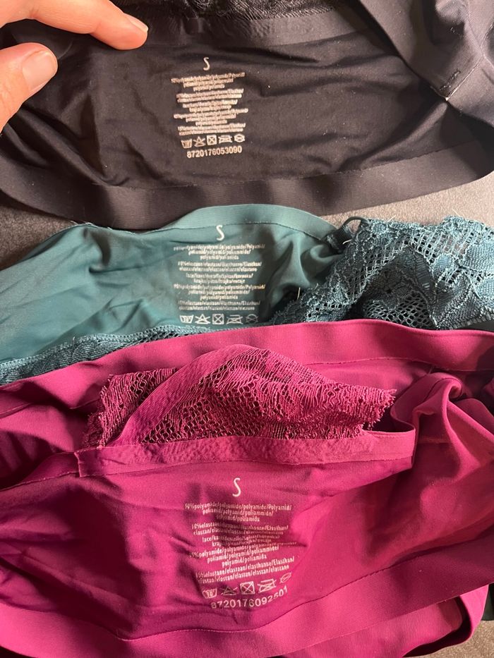 💖 Lot de 3 brassières en dentelle, neuves, jamais portées • Taille S • Photos conformes aux articles • Envoi rapide via Mondial Relay ✨ Parfait pour ajouter une touche élégante à votre lingerie ou pour offrir !