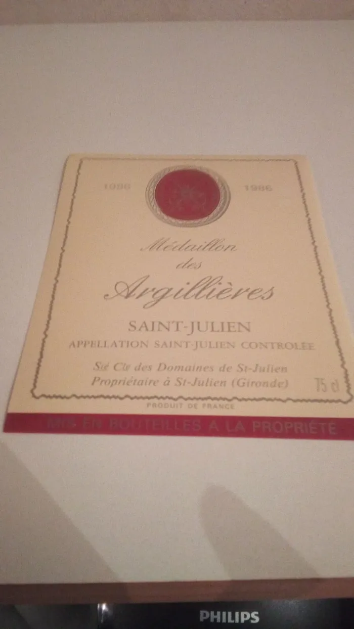 étiquette de vin médaillon des argilieres saint julien 1986 neuve -