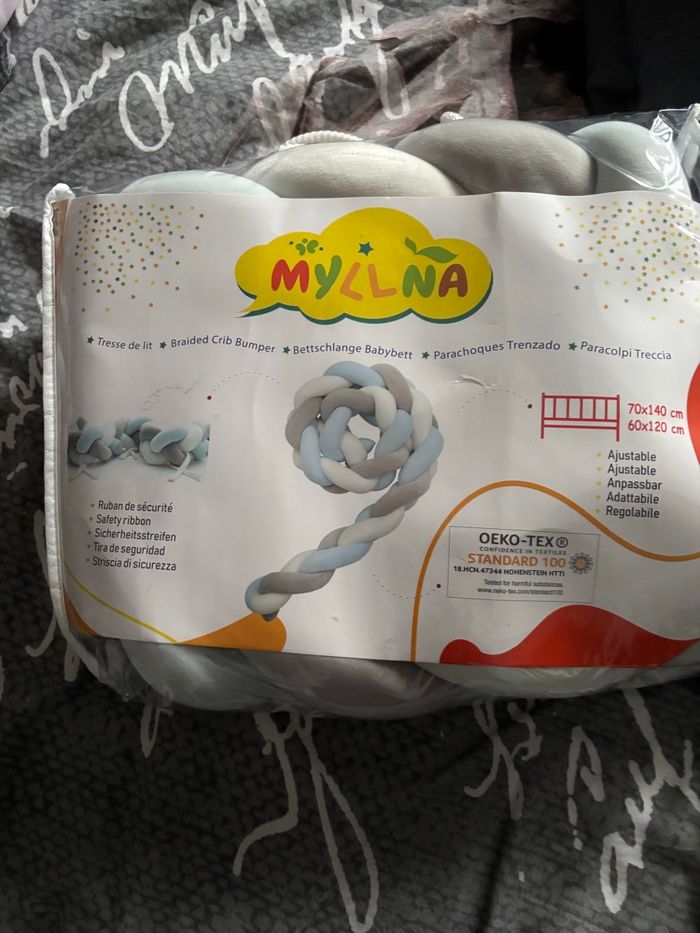 Tresse de lit, bleu, gris blanc, 2 m en très bon état de marque Myllna