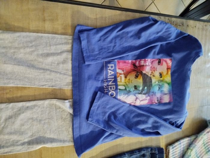 1 ensemble raimbow high 8 ans 1 jegging kiabi 8 ans 1 pull 8 ans Gemo 1 haut manches longues Tissaia 8ans