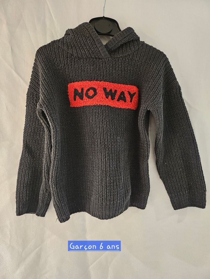 Pull avec capuche. Marine et rouge. Marque : Kiabi Taille : 6 ans