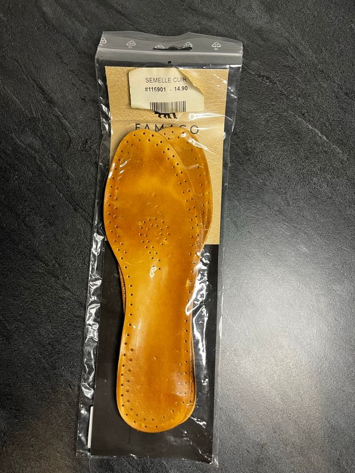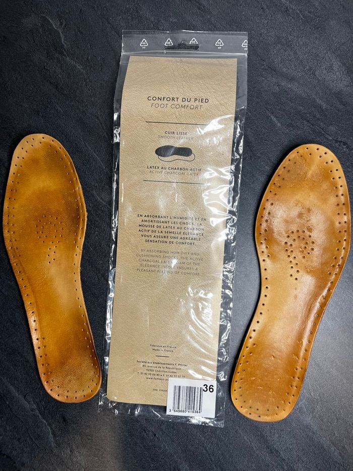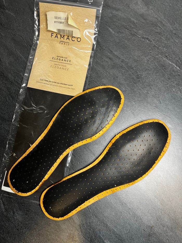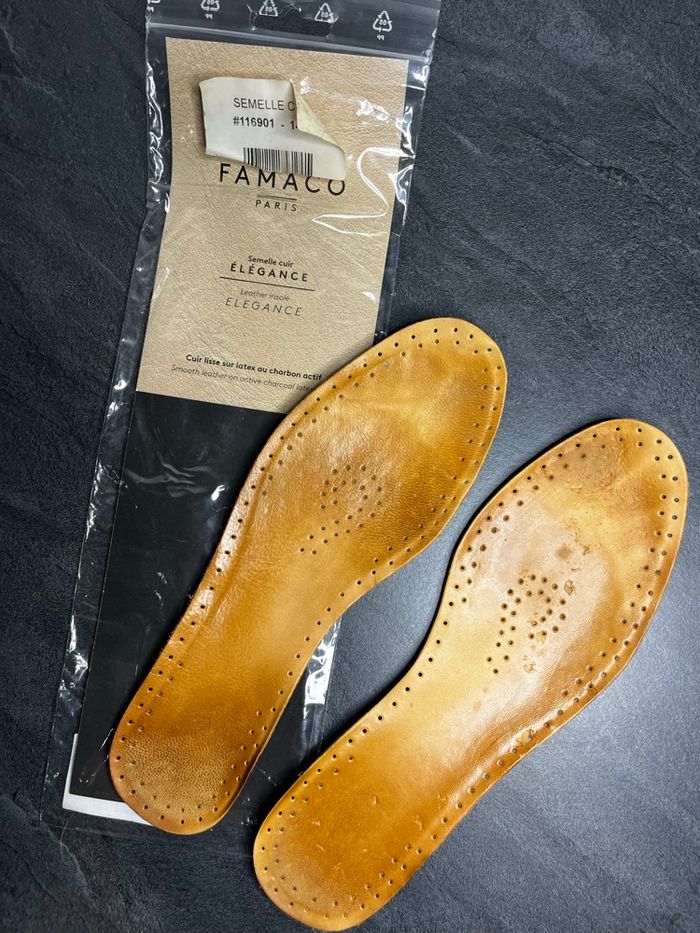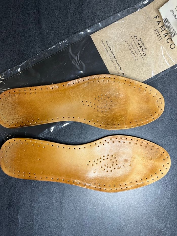 semelles en cuir Famaco Paris, élégantes et de très bonne qualité : • Pointure 36 • Peu utilisées, bon état général • Cuir lisse sur latex au charbon actif pour plus de confort • Payées 14,90 € à l’achat • Photos conformes à l’article 💌 Parfaites pour apporter confort et élégance à vos chaussures.