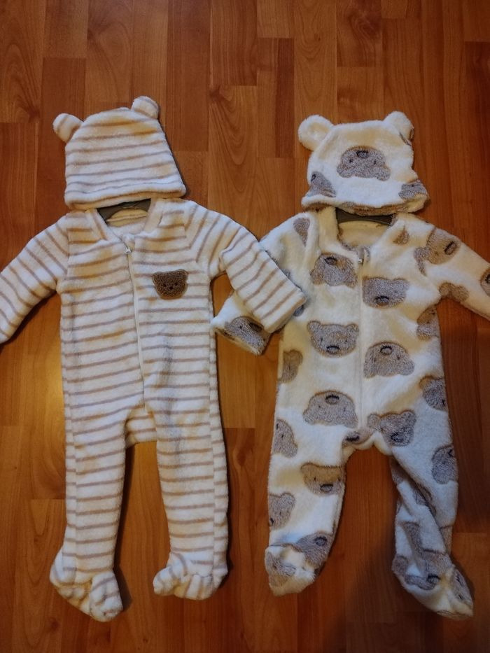 2 overall pour hiver avec chapeau. Taille 3 mois. Jamais utilisé.