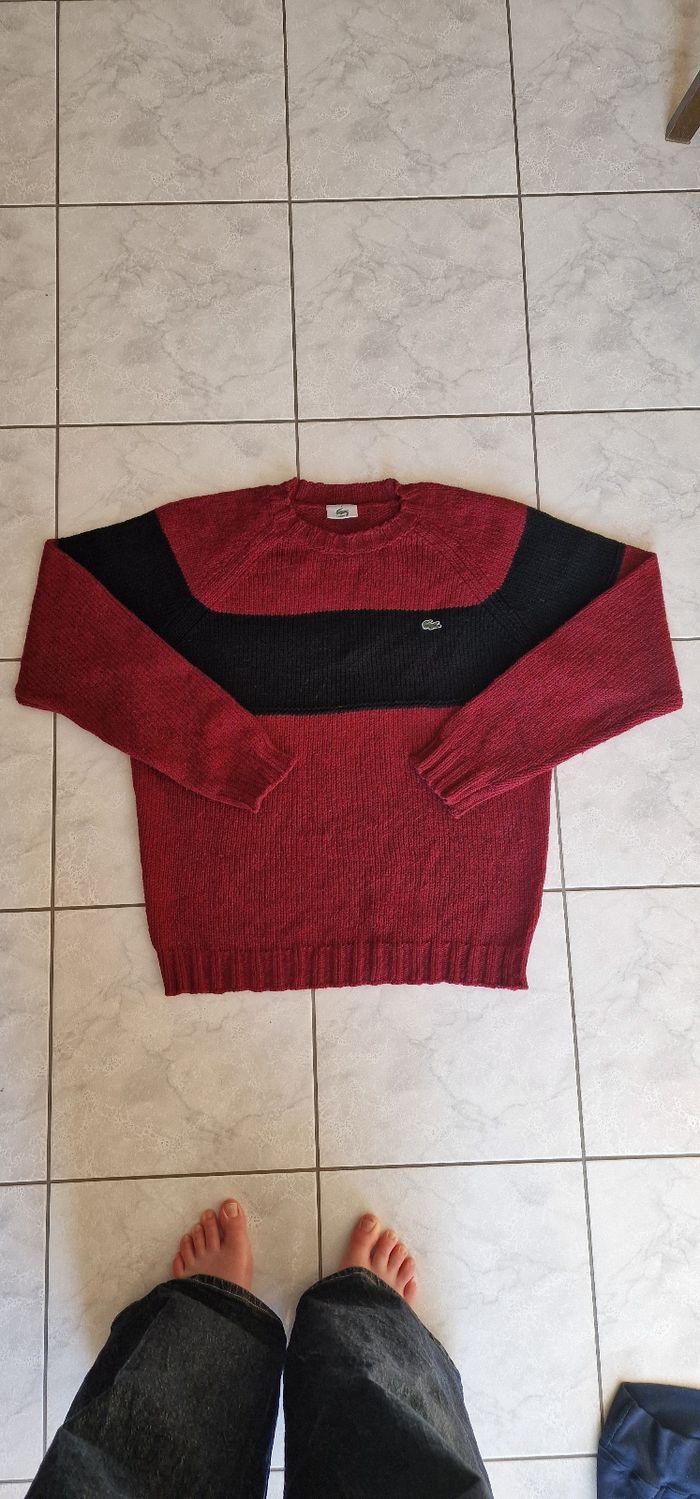 Pull d'hiver manche longue rouge et noir XL / Lacoste Original - photo numéro 1