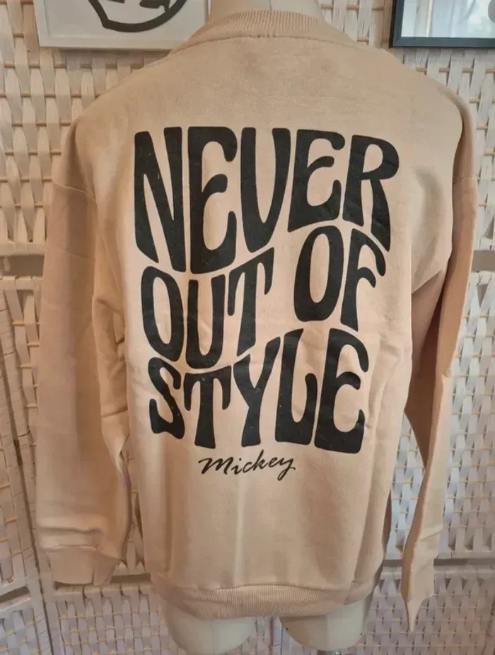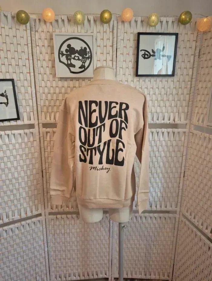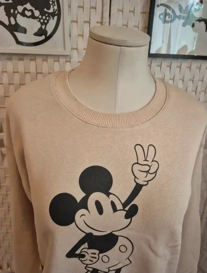 💕Superbe sweat-shirt Disney de couleur beige, taille M./38 Parfait pour les fans de Mickey et pour un look décontracté et stylé ! ⚫️ Motif Mickey "Positive Vibes Only" à l'avant, faisant le signe de la paix. ✌️ Inscription "NEVER OUT OF STYLE" au dos avec une typographie originale et moderne. ✨ Coupe confortable, idéal pour la mi-saison ou les soirées d'été. 👍 En excellent état. 🧵 Matière agréable, majoritairement en coton. 🏠Maison non fumeur 🚭 💬N'hésitez pas à me contacter si vous avez des questions ! 📦 Pensez à consulter mon dressing pour profiter de lots à prix réduits 🤍 Ici ⏩ #ribeirozazafemme38 #femme38 #38femme #pull38 #38pull #pullfemme #femmepull #pullmickey #pullmickey38 #Mickey38 #disney #mickeymouse #sweatdisney #sweatmickey #tailleM #sweatshirt #positivevibes #neveroutofstyle #disneyaddict #lookdujour #modefemme #tenuefemme #beige #lookcasual #streetstyle #disneystyle #sweatM #fashionaddict
