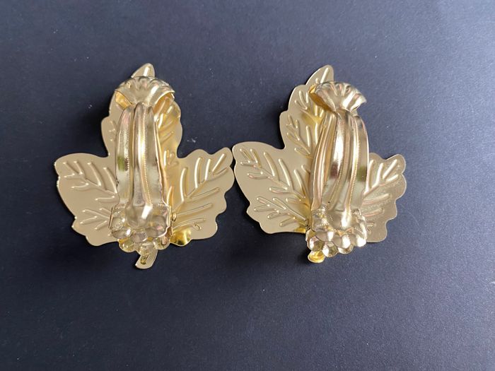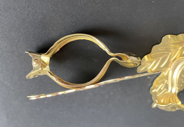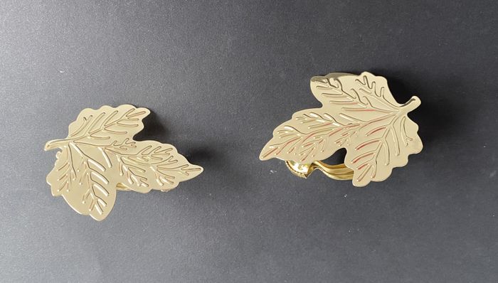 Lot de 2 pinces à rideaux en métal doré, avec un motif de feuilles élégant et moderne. Très bon état.