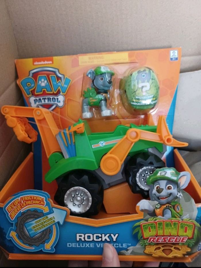Vehicule et figurine de rocky dinosaure avec son œuf dino surprise. Neuf