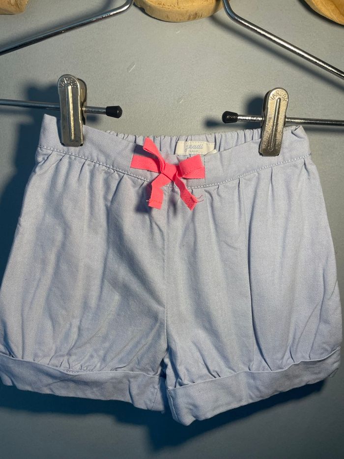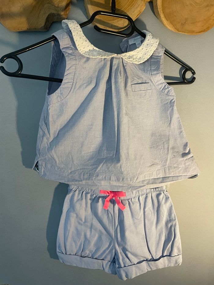 Bonjour, je vends un ensemble de short bouffant, et deux petits chemisier, manches courtes, qui se boutonne sur le dos de la marque Jacadi, en taille 18 mois. En plus je donne un T-shirt, de la même taille, marque Kiabi.
