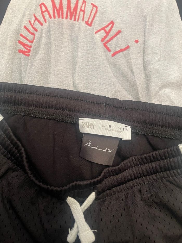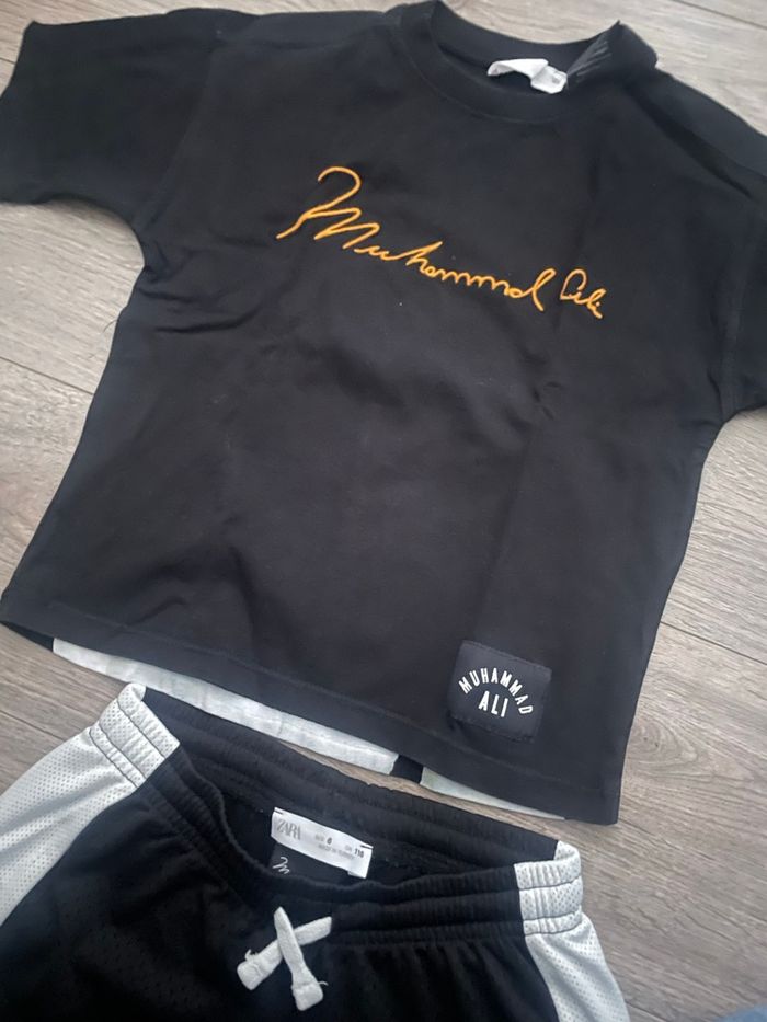 Ensemble t-shirt short Zara ‘Muhammad Ali ‘6/7 ans. T-shirt 12O centimètres, short 116 centimètres mais taille grand .