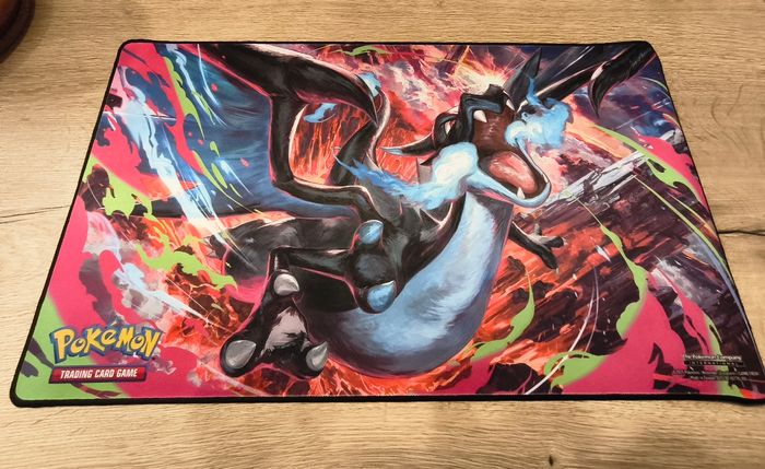 A vendre Tapis officiel Pokémon Méga Dracaufeu X UPC neuf Le déballé sur la photo est le mien, celui en vente est toujours scellé. Envoi rapide et soigné.