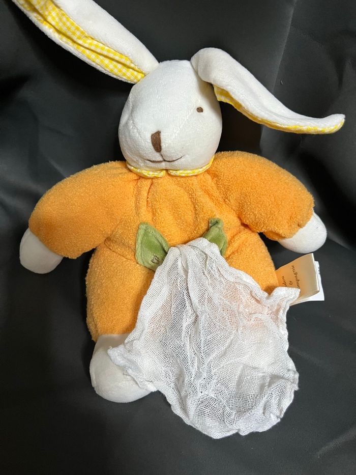 Doudou et compagnie lapin orange mouchoir blanc  - photo numéro 4