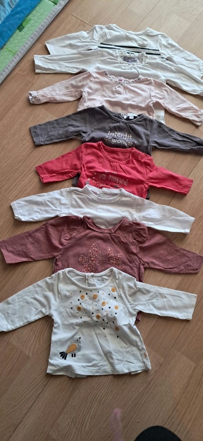 Lot de 8 tee-shirts manches longues 3 mois Plusieurs marques Bon état Le obaibi blanc présente une légère tâche au niveau du col