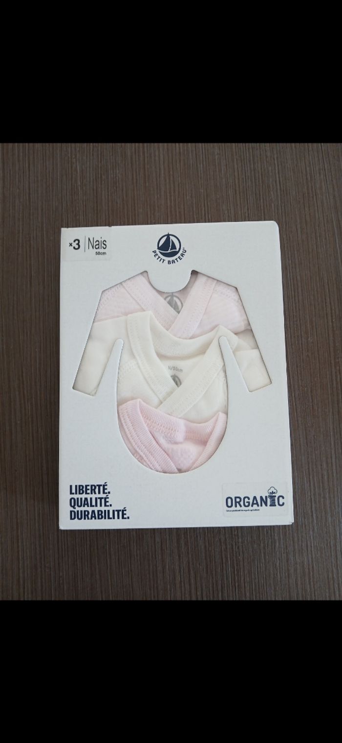 Lot de 3 bodies fille manches longues petit bateau naissance 0 mois - photo numéro 1