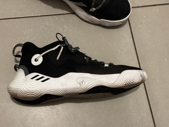 Je vends cette paire de baskets Adidas Harden Stepback 3 - Marque : Adidas - Modèle : Harden Stepback 3 - Pointure : 42 (US 8.5) - Couleur : Noir - Matière : Textile - État: bon état, porté plusieurs fois Vendu sans la boite