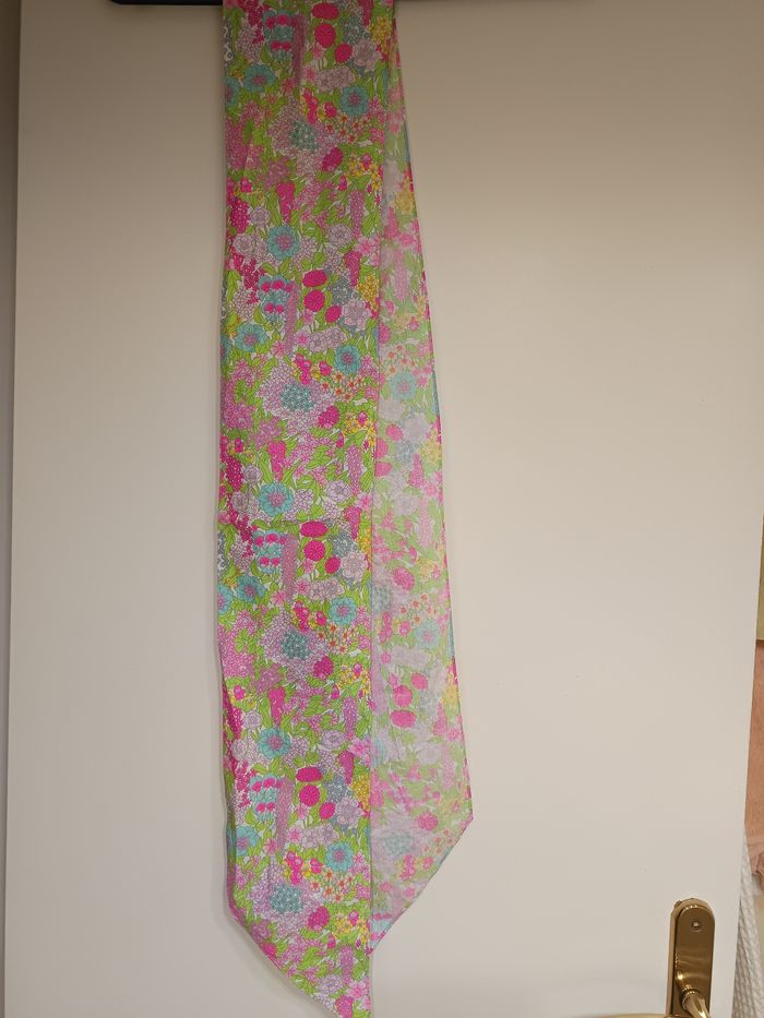 Peut être porté en tant que ceinture en tissu ou en tant que bandeau large dans les cheveux.