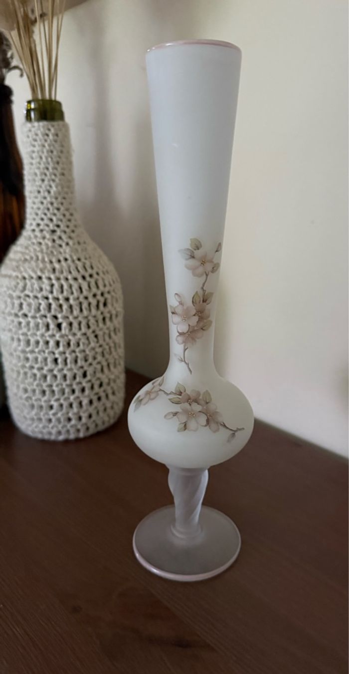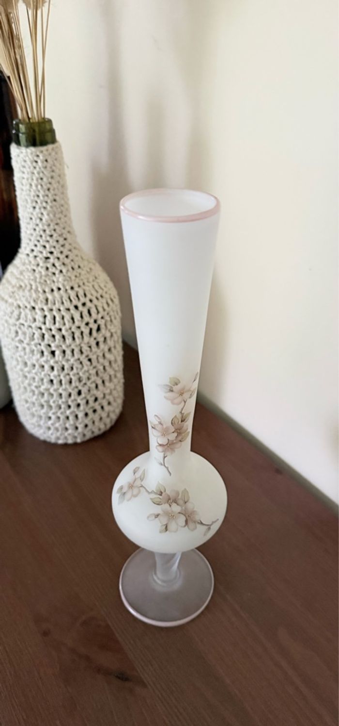 Vase en verre satiné dépoli motifs fleurs - photo numéro 8