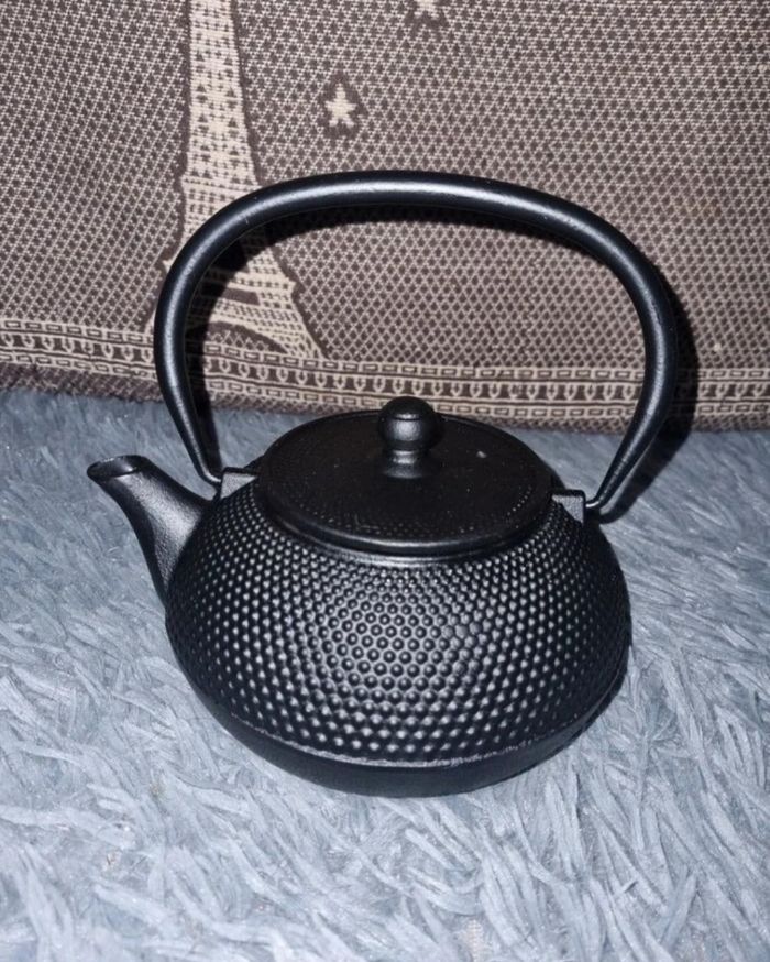 Théière en fonte noir style vintage, -dimensions théière environ 17,5X15,5X16,5cm , -dimensions environ tamis 5cm, -environ 700ml, résistante à la chaleur et garde la chaleur plus longtemps, tamis en inox pour le thé frais ,poignée pliable, idéal cadeau Noël ou autres 👍🏼
