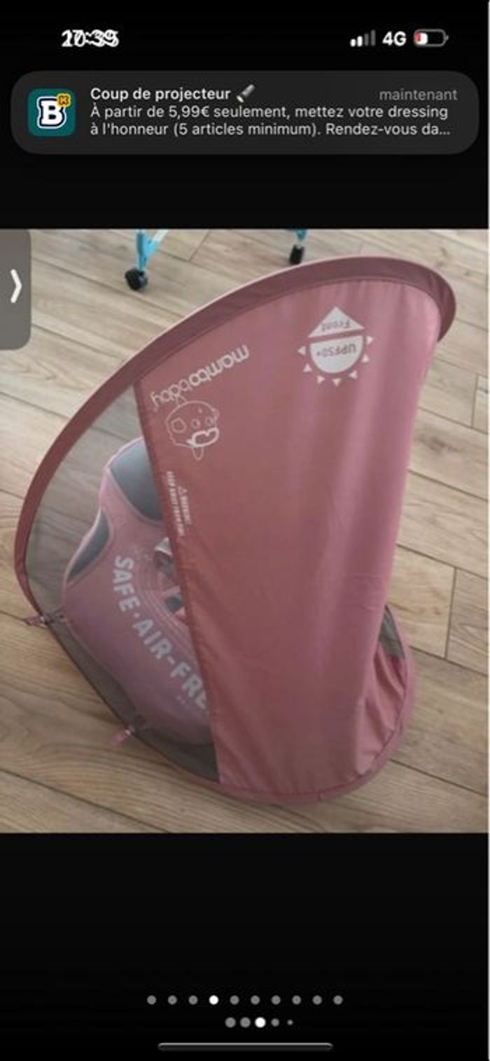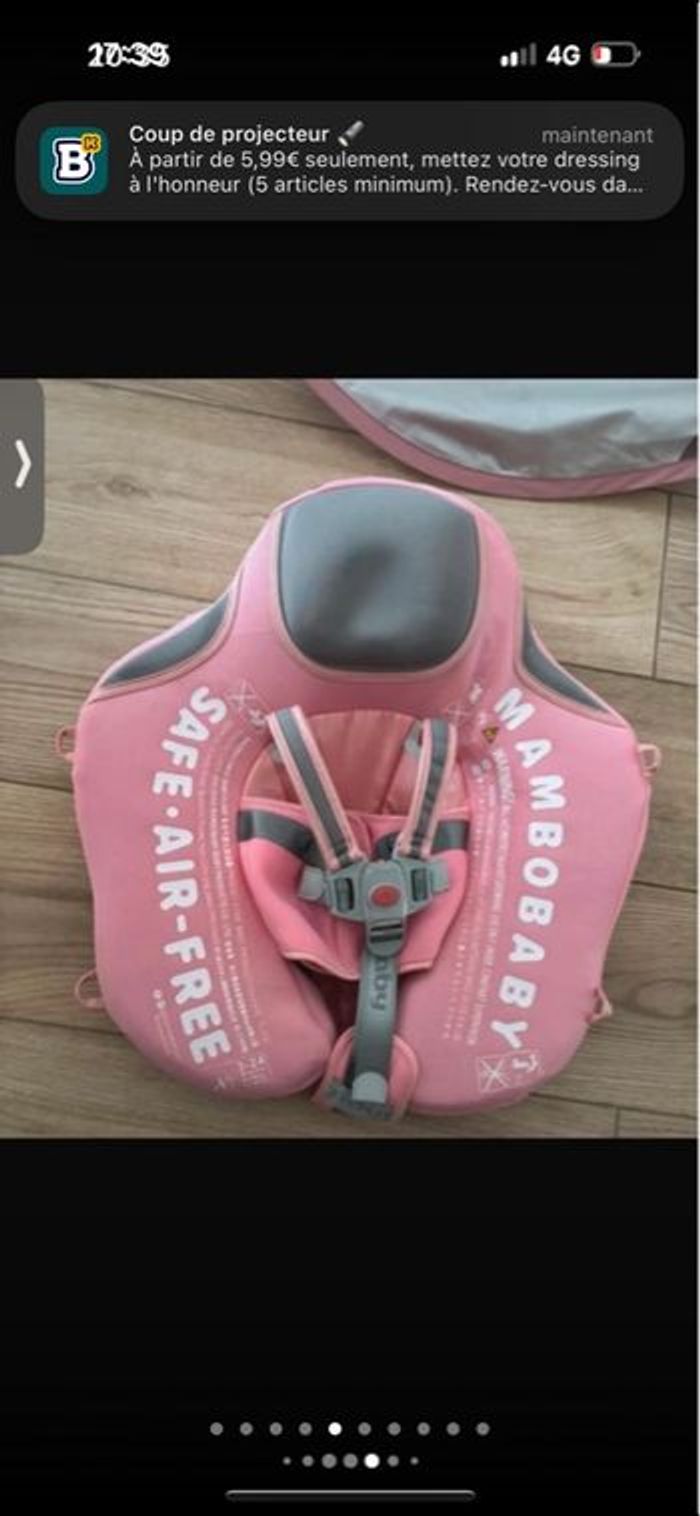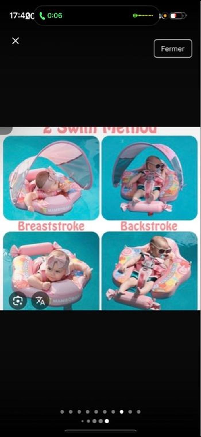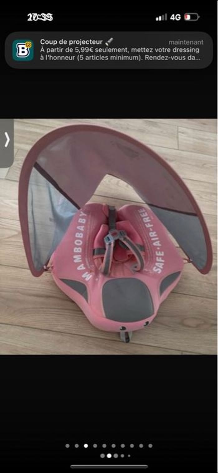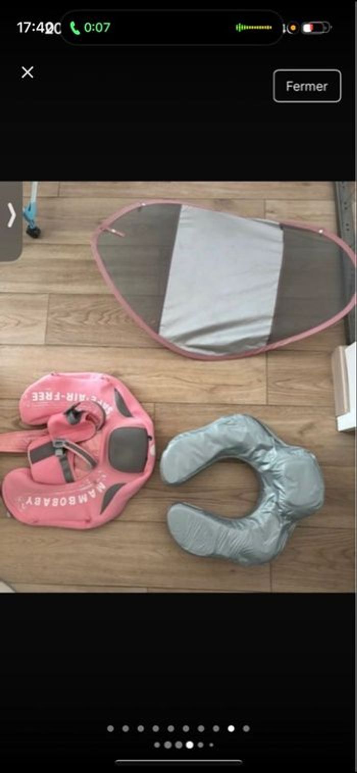 Bouée avec pare soleil inclu La bouée en très bon état Le pare soleil peut s’enlever de la bouée , il est en bon état car il a un petit trou et une tache 6-18kg