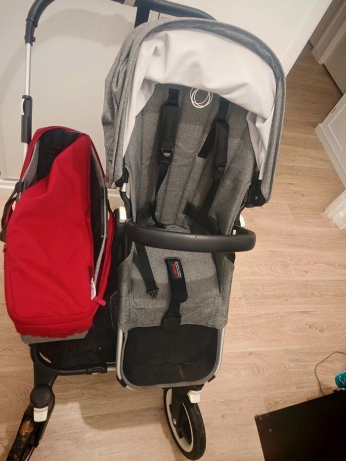 Je vend ma poussette bugaboo donkey 2 mono qui peux devenir poussette double en ajoutant une assise ou bien un cosy grace a un adaptateur, en tres bon état avec le panier latérale qui peut porter jusqu'à 10kg et le grand panier neuf qui lui aussi peut porter 10kg assise de 6mois et plus jusqu'à 4 ans Un couvre panier et un canopé de la même couleur Plus le canopé gris et adaptateur pour cosy Pour plus d'info me contacter par message