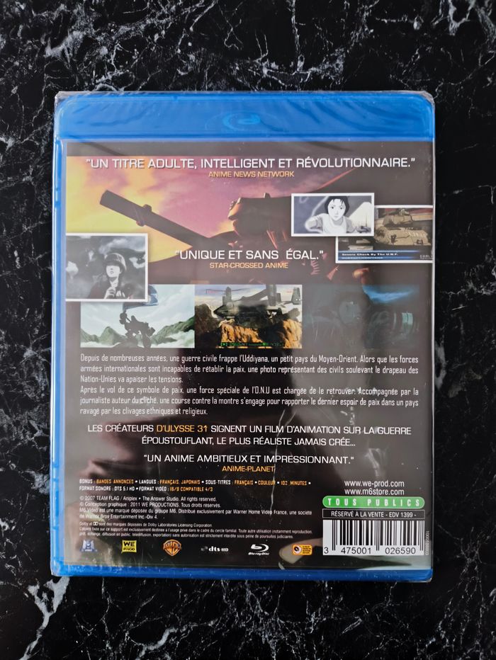 Film Flag (2006) neuf encore sous blister. Animation, Science-fiction et Guerre de Eiji Yoshikawa avec Takashi Okazaki, Kenji Nomura, Ai Orikasa, Fumiko Orikasa et Taiten Kusunoki. Plusieurs autres films (DVD et blu-ray) et séries télé disponibles sur mon dressing. Si vous avez des questions ou souhaitez plus de photos, n'hésitez pas à me demander. Prix négociable seulement si vous achetez plusieurs articles. N'hésitez pas à créer un lot et à faire une proposition raisonnable et à me demander un prix. Tag de recherche : #neboo_video #neboo_bluray #neboo_film blu ray bluray langue français française French FR
