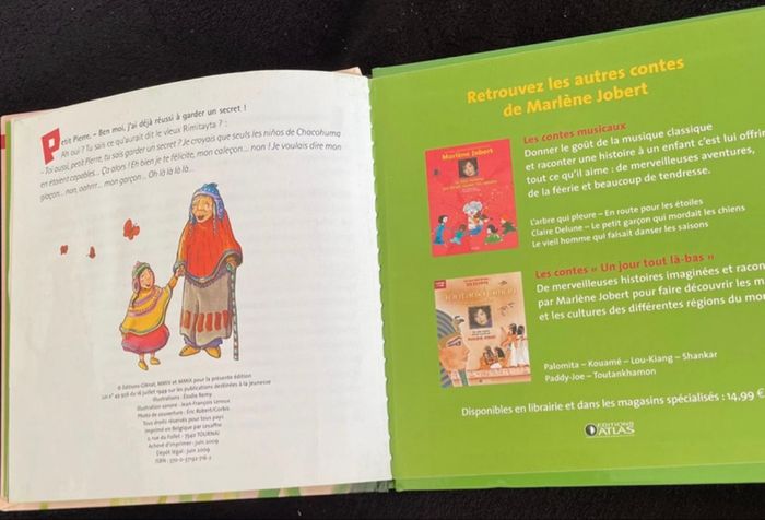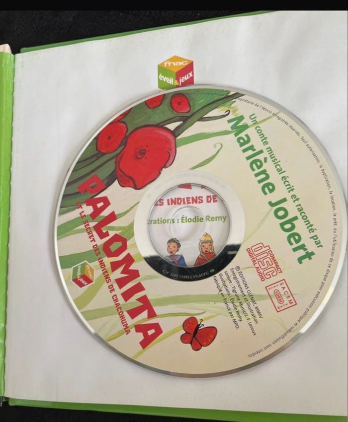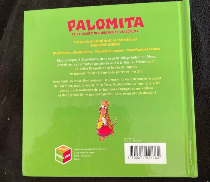 Livre palomita et le secret de indiens de chacohuma un conte musical écrit et raconté par Marlène Jobert Livre vendu avec CD en très bon état