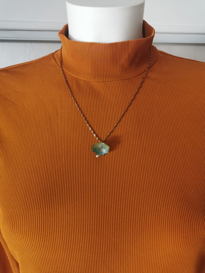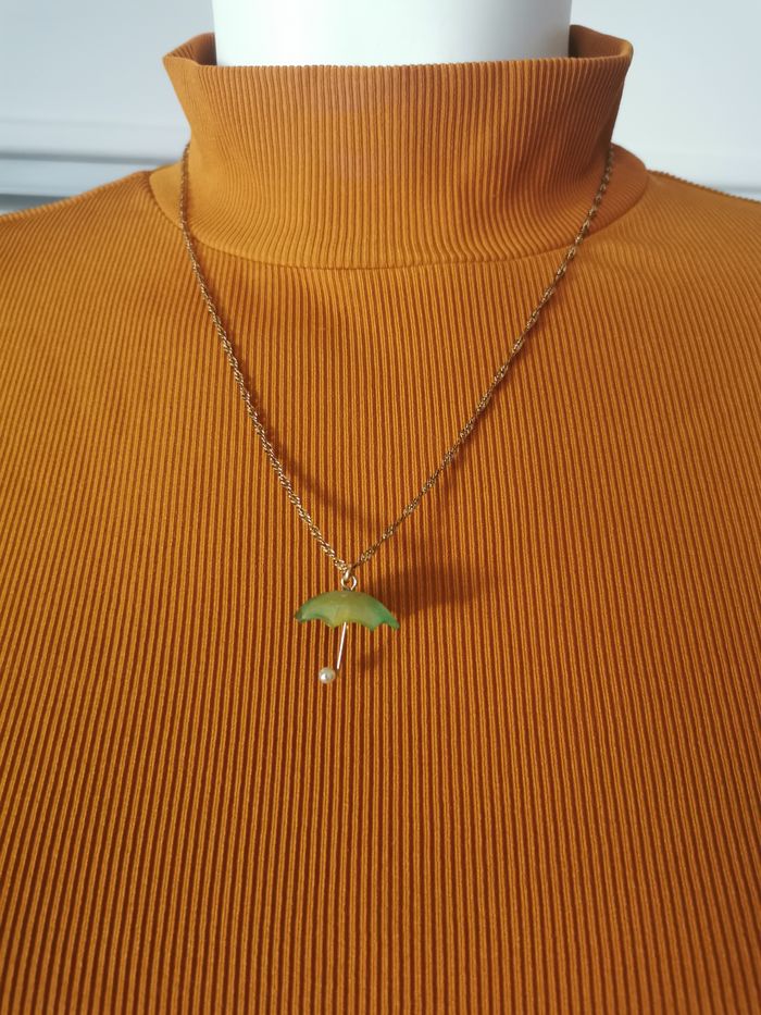 Chaîne dorée torsadée avec pendentif parapluie vert - photo numéro 4
