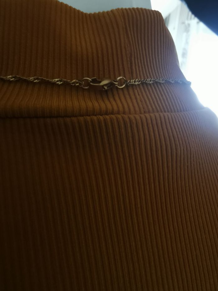 Chaîne dorée torsadée fine avec pendentif parapluie vert en plastique. En très bon état, très élégante. Dimensions : Longueur totale : 50 cm Longueur pendentif : 2 cm Epaisseur chaîne : 2mm Poids : 5g