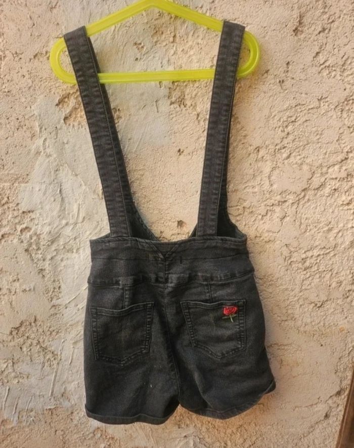 Combishort noir en jean avec zip sur le devant perle et rose brodés sur la poche arrière - photo numéro 5