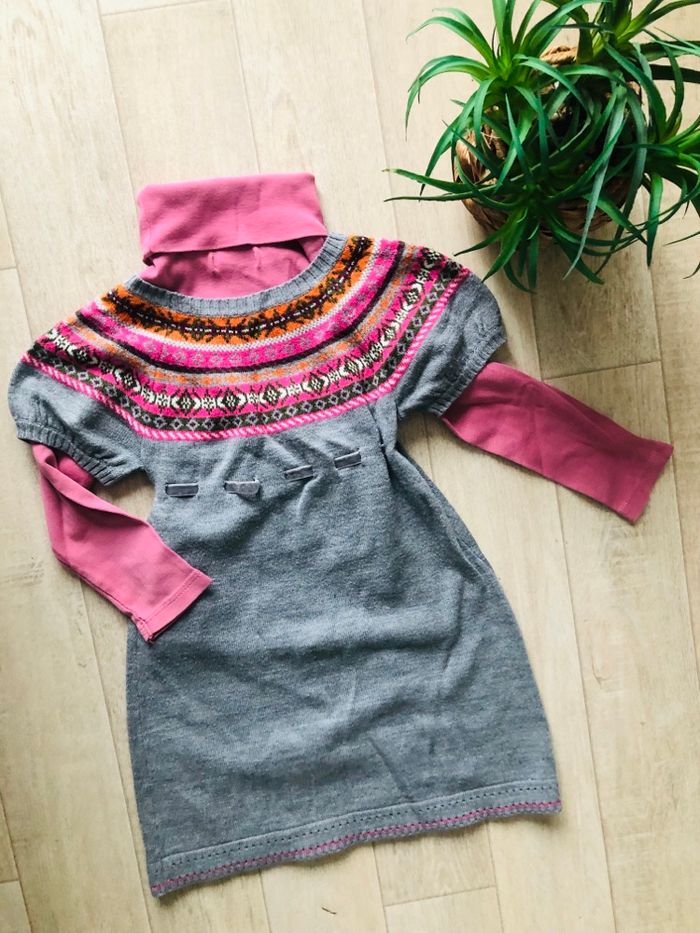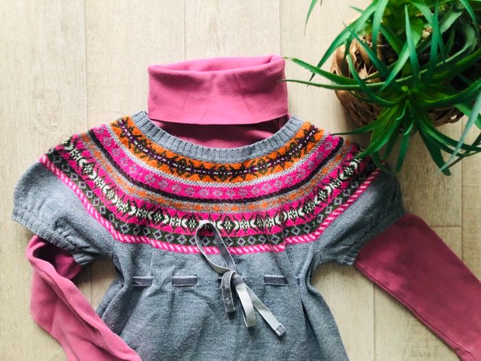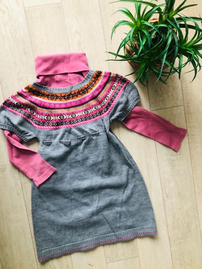 Robe grise et fushia H&M en bon état. Taille 2-4 ans et tee-shirt col roulé rose. Taille 2-4 ans, La Redoute en bon état.