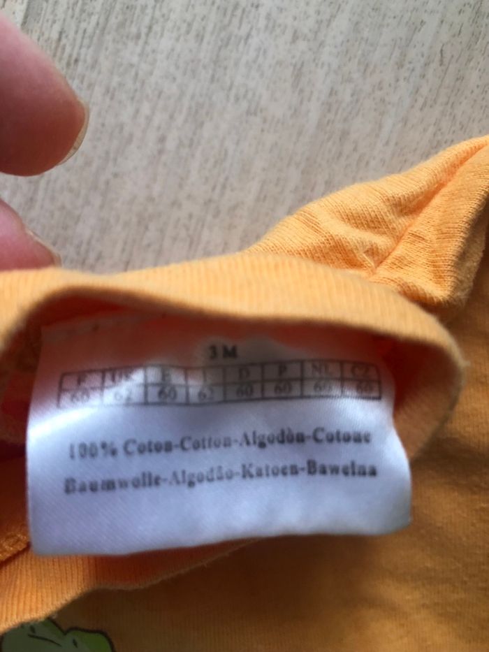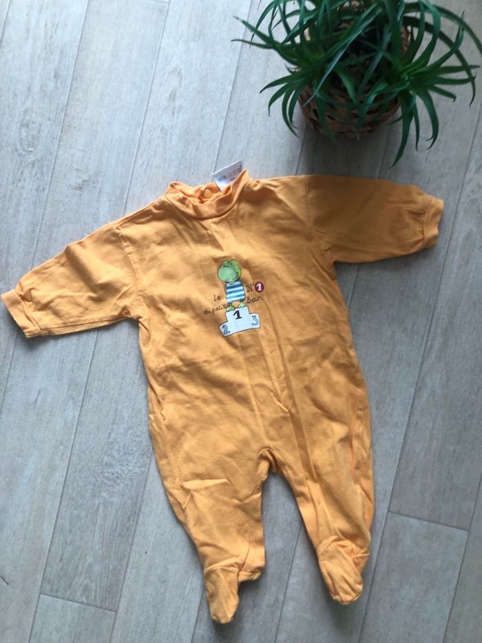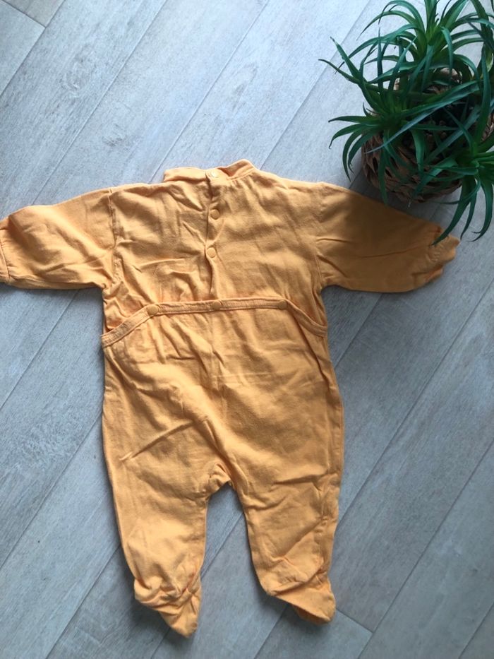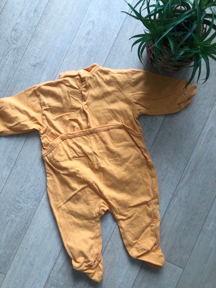 Pyjama léger orange unisexe en bon état. 3 mois