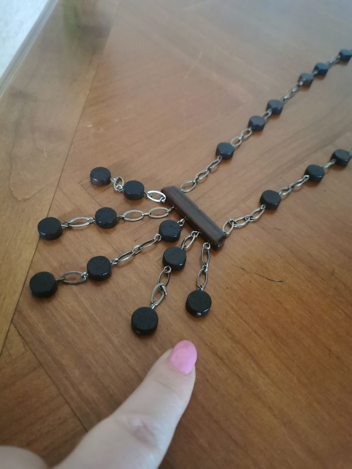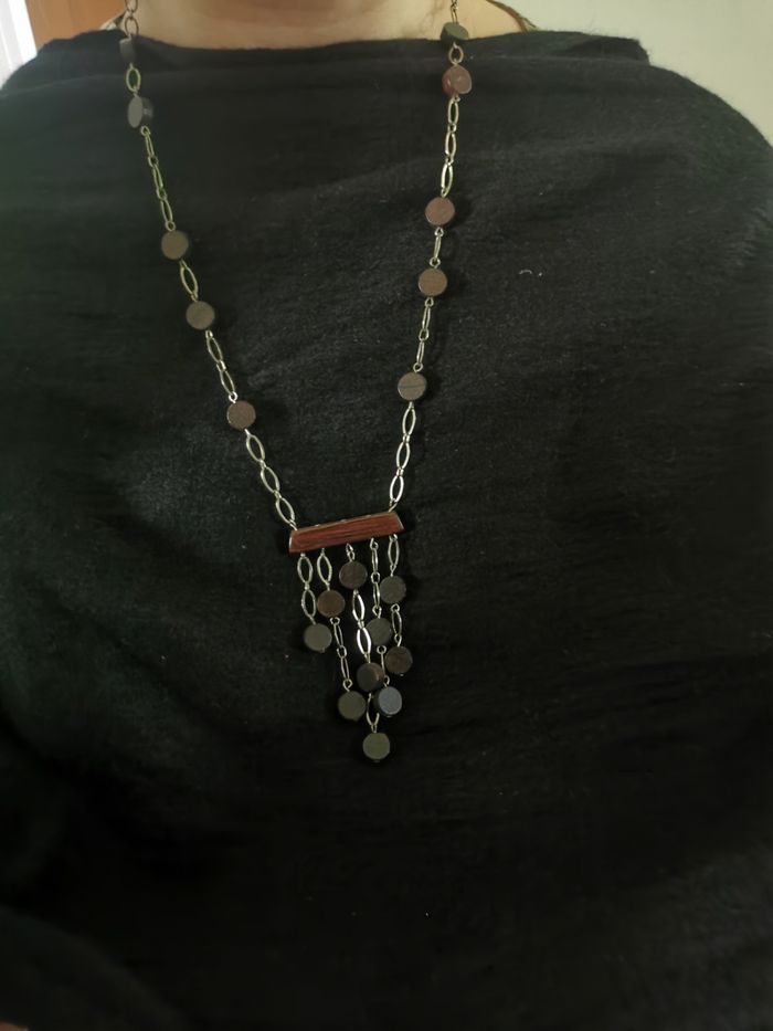 Sautoir en bois marron foncé et acier argenté - photo numéro 1