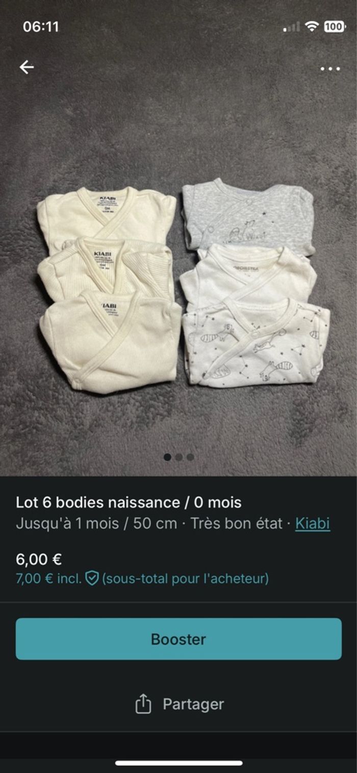 Lot 6 bodies naissance / 0 mois Kiabi - photo numéro 1
