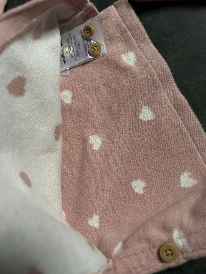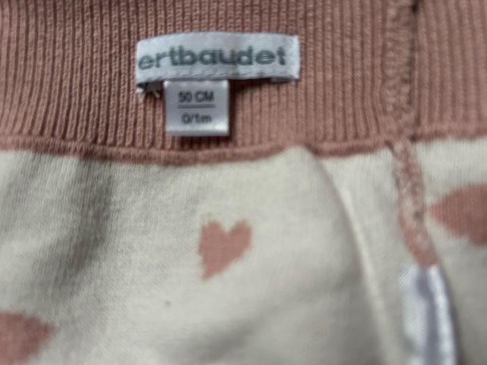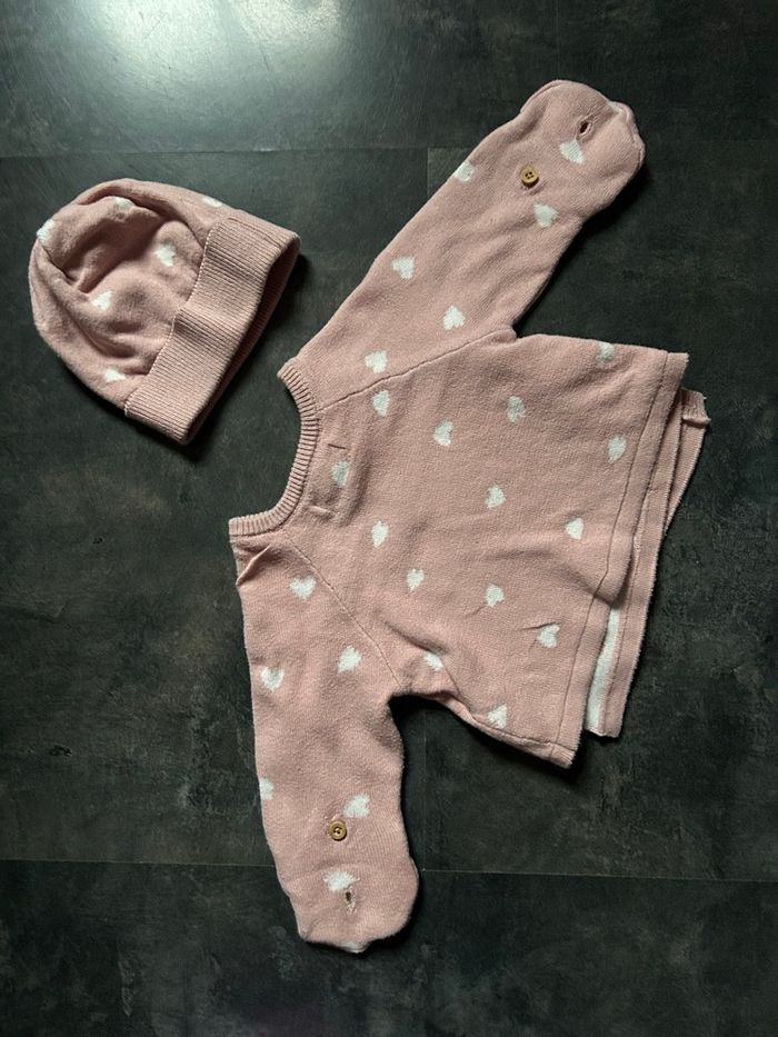 Brassière cache cœur avec moufles et bonnet coordonné Rose poudré cœurs blancs Taille naissance 50 cm Marque vert baudet 100% coton