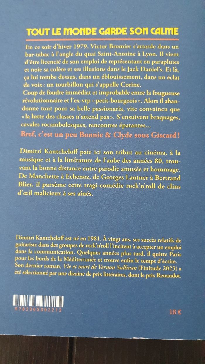 Je vends ce roman policier "Tout le monde garde son calme" de Dimitri Kantcheloff.