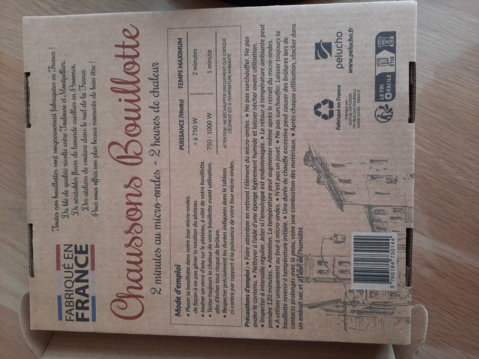 Chaussons bouillotte à faire chauffer au micro ondes pour une sensation de chaleur de 2h. Contient du blé et de la lavande. Très doux, semelles antidérapantes. Jamais utilisé FABRIQUE EN FRANCE, marque Pelucho Prix neuf 24,90€